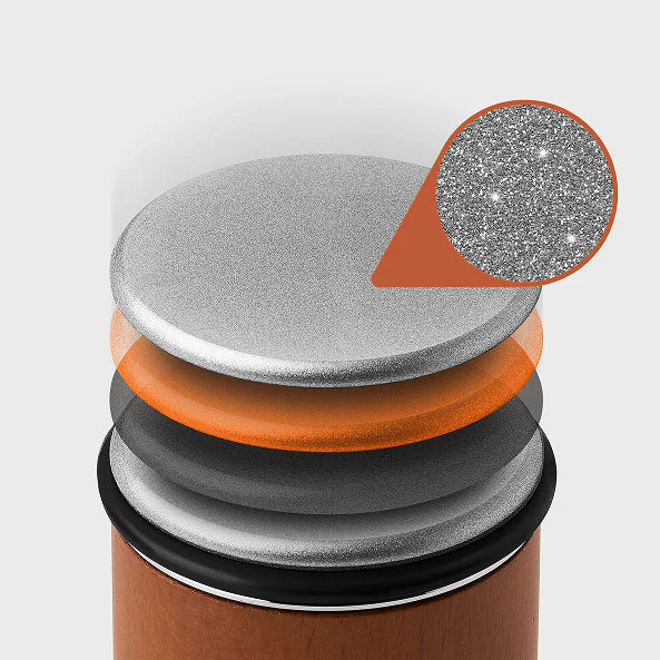 Innbyggður keramíkdiskur fjarlægir örójöfnur og tryggir fullkomna ásetningu.