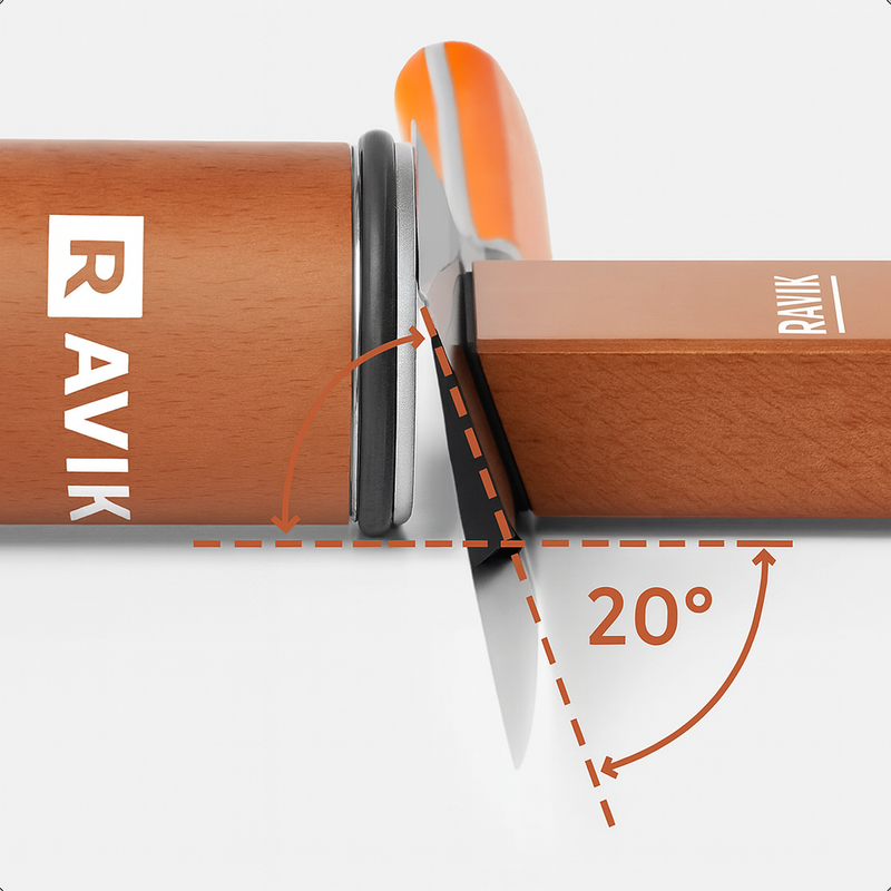 Hættu að skemma hnífana þína með röngum hallahorni! RAVIK segulhaldarinn heldur hnífnum stöðugum með tveimur stillingum – 15° og 20° – sem tryggja að slípunin sé ávallt í fullkomnu jafnvægi. Þannig færðu nákvæman, fagmannlegan árangur á nokkrum sekúndum – án mistaka.