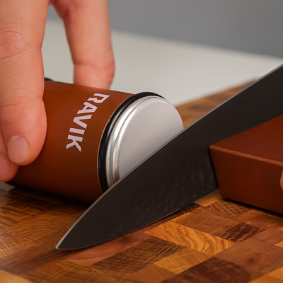 Framleiddur með einkaleyfisvarinni demantstækni, gefur RAVIK brýninn hnífum þínum langvarandi beittni á örfáum mínútum – hratt, öruggt og án fyrirhafnar.